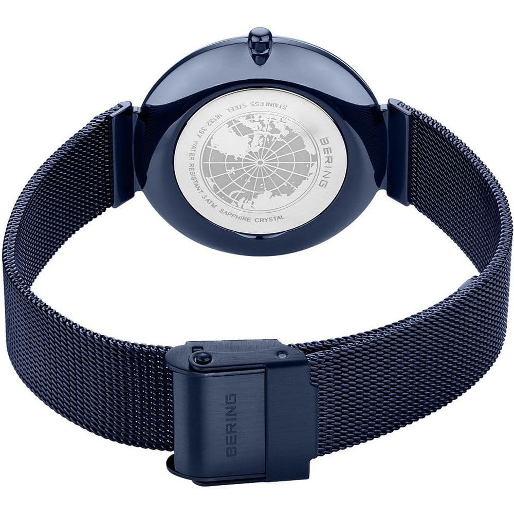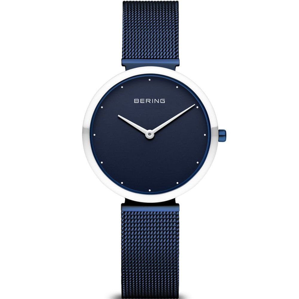 Das Material des Uhrengehäuses von Bering Classic Damenuhr 18132-397 ist Edelstahl, seine Farbe ist Ezüst,Kék, das Material des Armbandes ist Edelstahl und seine Farbe ist Blau. Der Durchmesser des Uhrengehäuses beträgt 32 mm, seine Form ist Rad. Das Glas der Uhr ist Saphir (kratzfrei), ihr Mechanismus ist Quarz und ihre Wasserdichtigkeit ist 3 atm (30 m) (tropffrei).