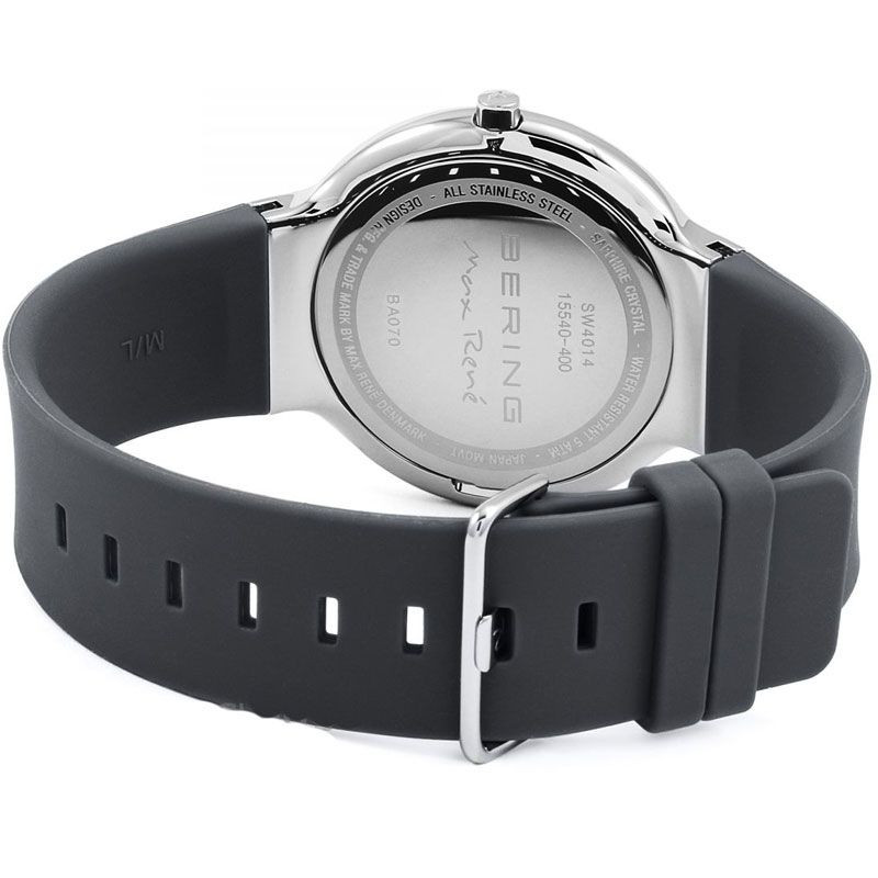 Das Material des Uhrengehäuses von Bering Max Rene Herrenuhr 15540-400 ist Edelstahl, seine Farbe ist Silber, das Material des Armbandes ist Silizium und seine Farbe ist Grau. Der Durchmesser des Uhrengehäuses beträgt 40 mm, seine Form ist Rad. Das Glas der Uhr ist Saphir (kratzfrei), ihr Mechanismus ist Quarz und ihre Wasserdichtigkeit ist 5 atm (50 m) (sehr sturzsicher).