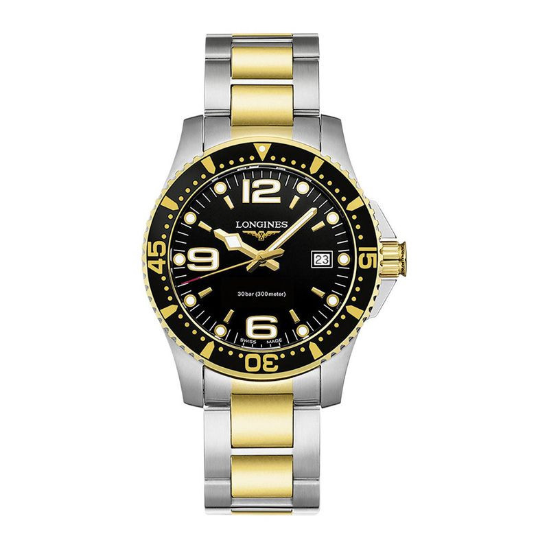 Das Material des Uhrengehäuses von Longines HydroConquest Herrenuhr L3.740.3.56.7 ist Edelstahl, seine Farbe ist Arany,Ezüst, das Material des Armbandes ist Edelstahl und seine Farbe ist Arany,Ezüst. Der Durchmesser des Uhrengehäuses beträgt 41 mm, seine Form ist Rad. Das Glas der Uhr ist Saphir (kratzfrei), ihr Mechanismus ist Quarz und ihre Wasserdichtigkeit ist 30 atm (300 m) (zum Tauchen geeignet).
