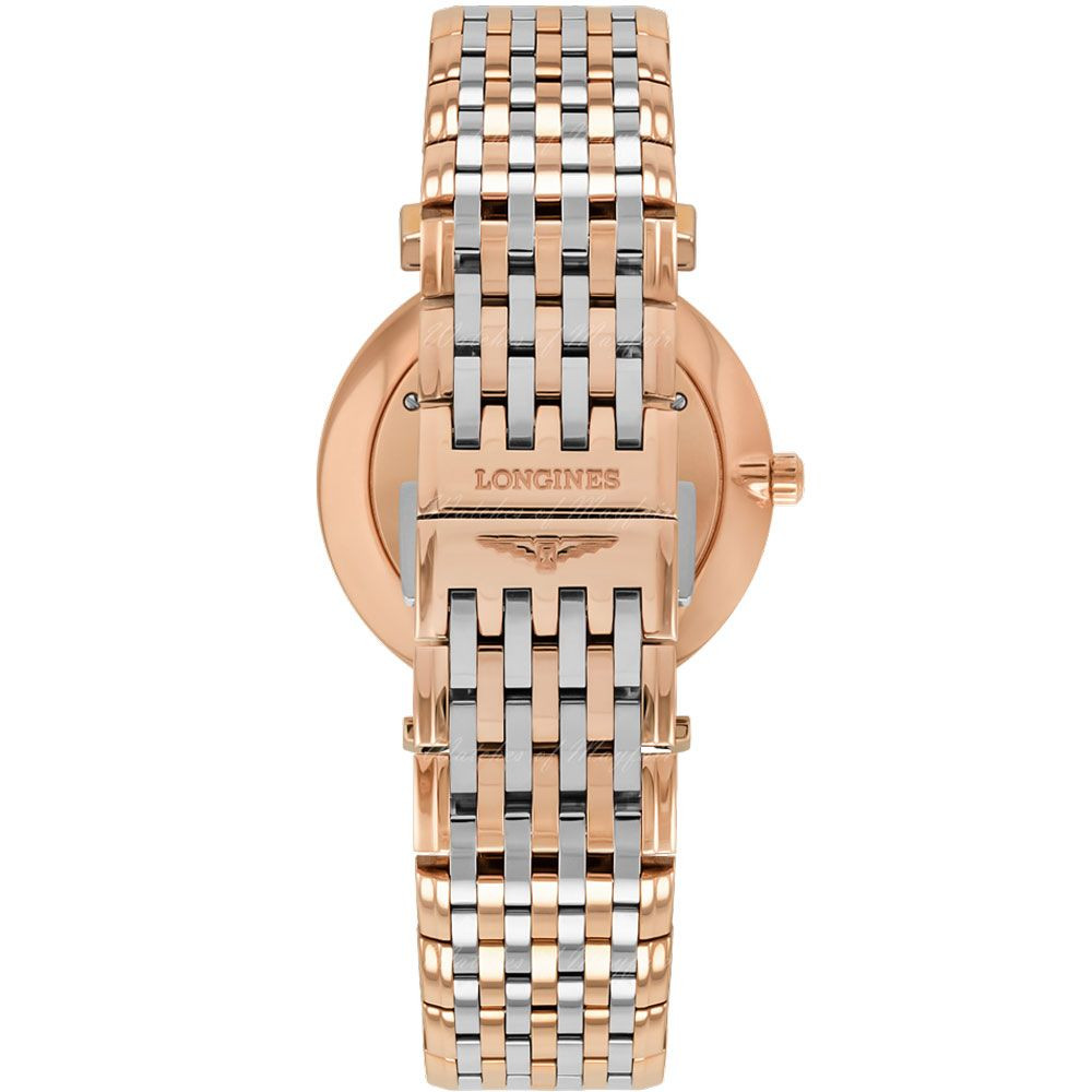 Das Material des Uhrengehäuses von Longines La Grande Classique Damenuhr L4.512.1.57.7 ist Edelstahl, seine Farbe ist Roségold, das Material des Armbandes ist Edelstahl und seine Farbe ist Ezüst,Rose gold. Der Durchmesser des Uhrengehäuses beträgt 29 mm, seine Form ist Rad. Das Glas der Uhr ist Saphir (kratzfrei), ihr Mechanismus ist Quarz und ihre Wasserdichtigkeit ist 3 atm (30 m) (tropffrei).